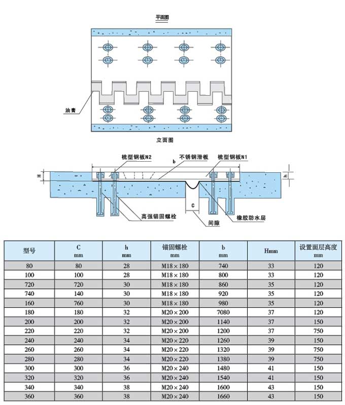 2.主要特性:防水、防塵、防震;適用于各種結(jié)構(gòu)的橋梁,伸縮量大,使用范圍廣。